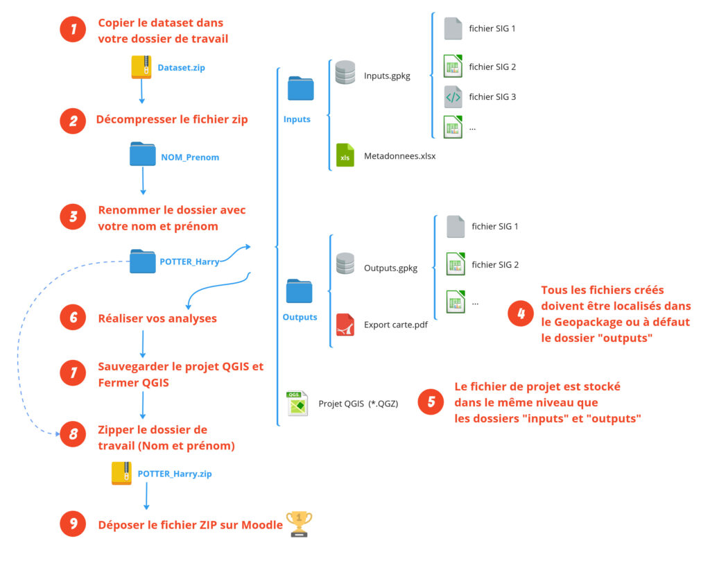 Les données sont téléchargeables ci-dessous au format Geopakage. Il vous est demandé de stocker les fichiers créés dans le Geopackage nommé « output.gpkg ».