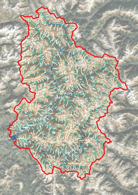 • Le réseau de drainage calculé et affichant l’ordre de Stralher